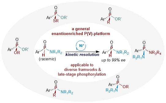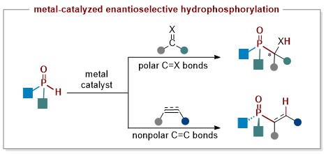 The enantioselective addition of H-P(O)R1R2 to alkynes (hydrophosphorylation) offers a direct and efficient pathway to P-chiral compounds; however, the enantioselective hydrophosphorylation of unactivated alkynes remains a significant challenge, typically relying on noble palladium catalysts and proceeding via a kinetic resolution mechanism with less than 50% conversion. To address these limitations, we recently achieved earth-abundant copper-catalyzed dynamic kinetic asymmetric hydrophosphorylation of alkynes, using a newly designed chiral 1,2-diamine ligand. This reaction is compatible with both aromatic and aliphatic terminal alkynes, yielding products with high yields (up to 95%), exclusive cis selectivity, and exceptional regio- and enantioselectivity (over 20:1 r.r. and up to 96% ee).